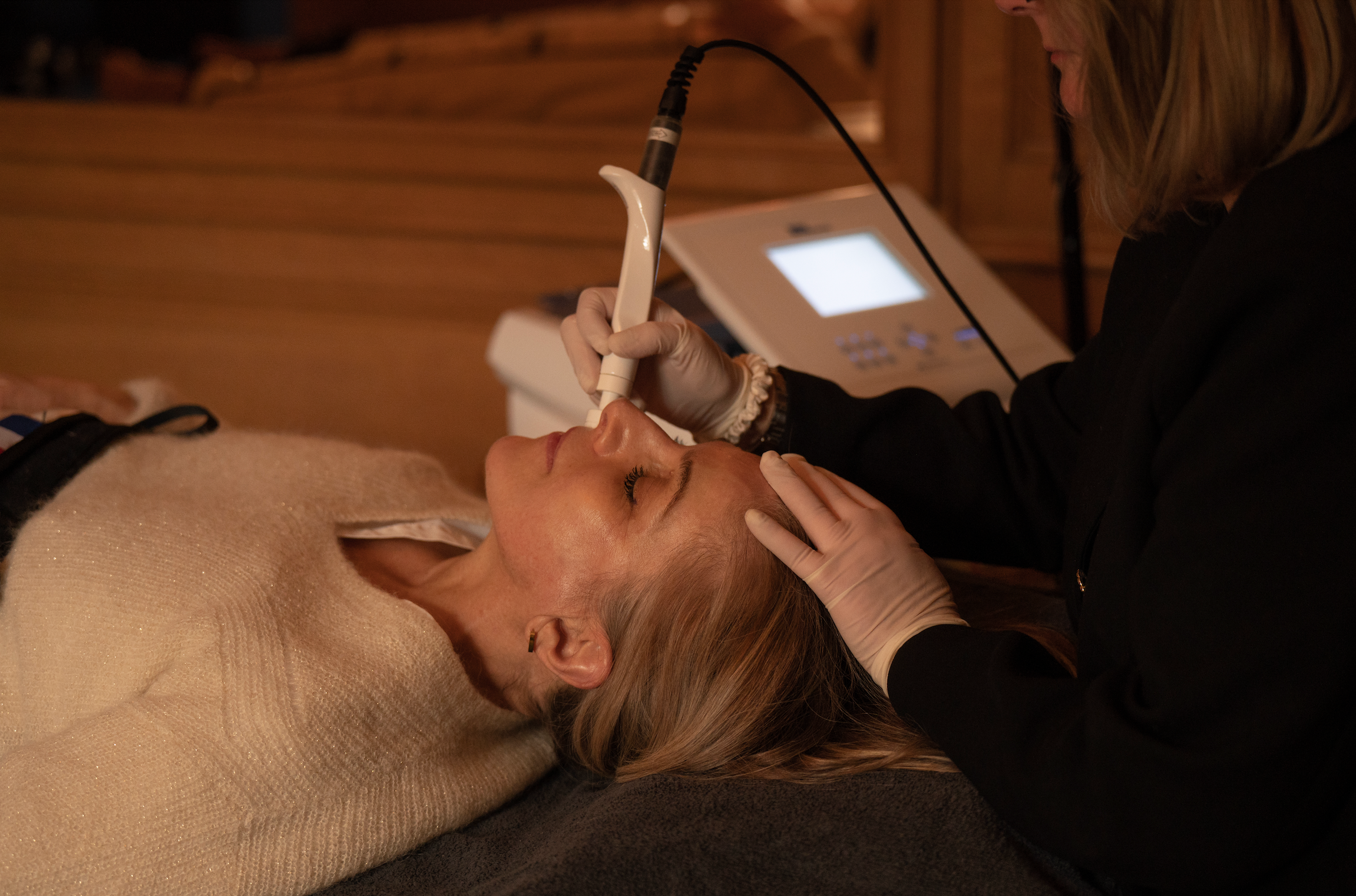 - Réparation et régénération : Les ondes stimulent la production de collagène et d’élastine, favorisant la restructuration du tissu cutané.
